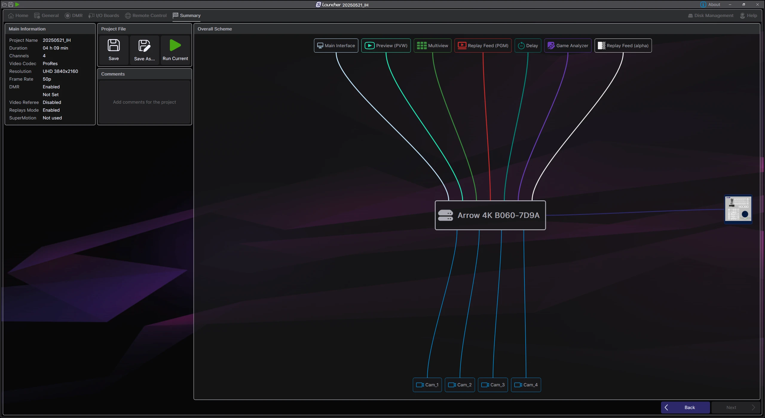 - Slomo.tv Launcher: dedicated software designed to enable users to intuitively configure the server for specific needs and capabilities. It can be used to manage projects, fine-tune settings and perform diagnostic tests