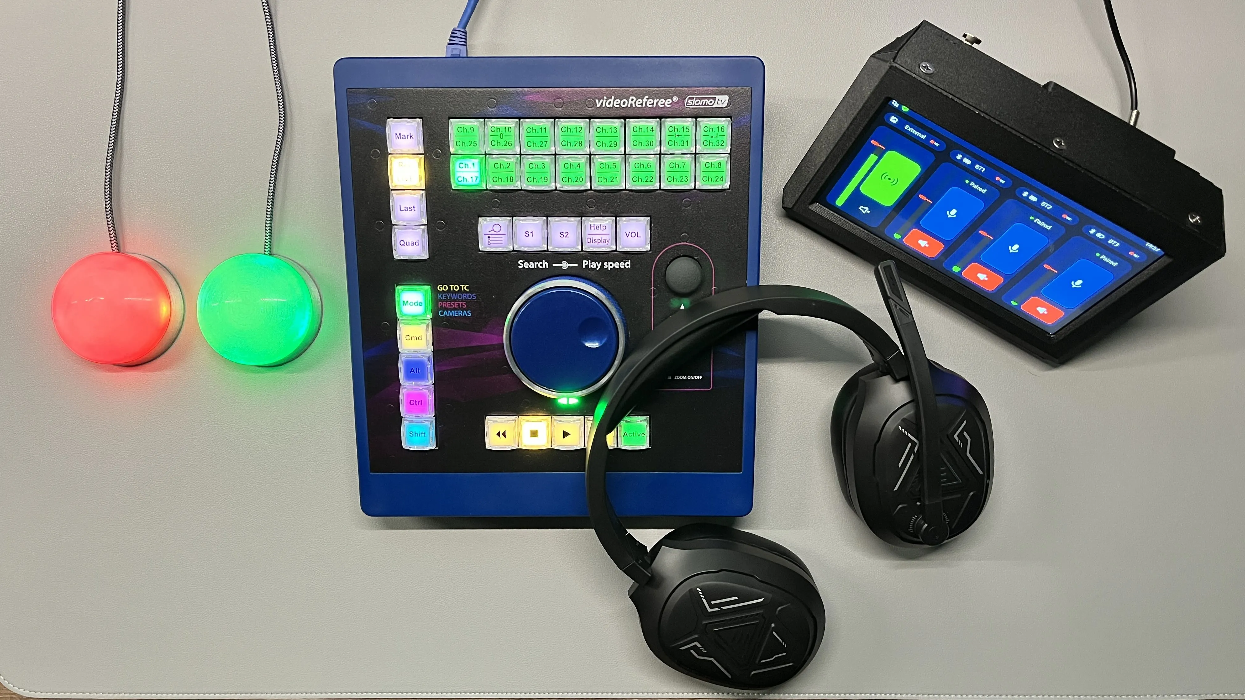 Based on the direct and extensive collaboration with VAR teams for many years, SLOMO.TV has developed a new system specifically designed for small teams and VOR communication: the Bluetooth Intercom. This new device builds on the experience with our existing VAR intercom solution — the SLS Intercom, which is embedded directly into the videoReferee® VAR server.