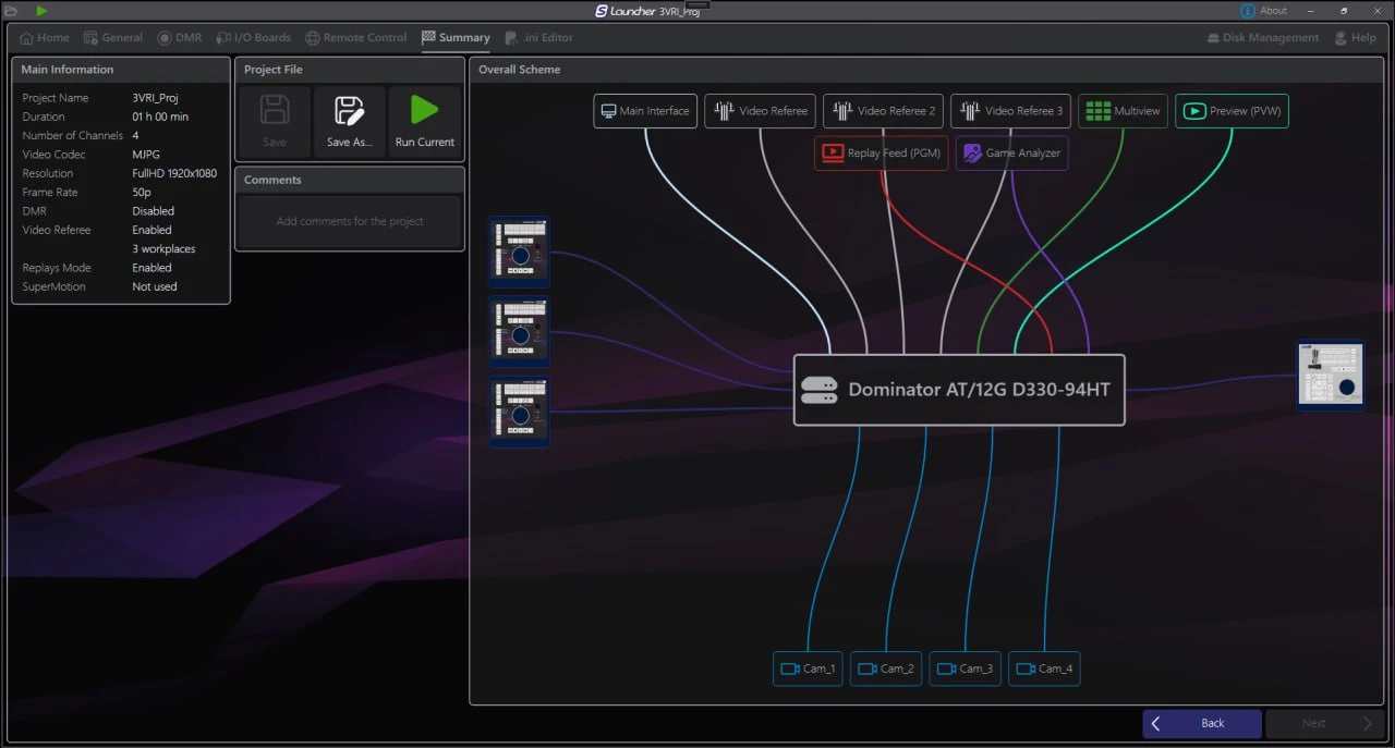 With Slomo.tv Launcher the user can configure the system to the specific needs of the particular project, and use the application to manage projects, fine-tune settings and perform diagnostic tests. The Launcher allows users to customize every aspect of the server's operation - replay, recording for NLE or video-refereeing, as well as all additional functions: