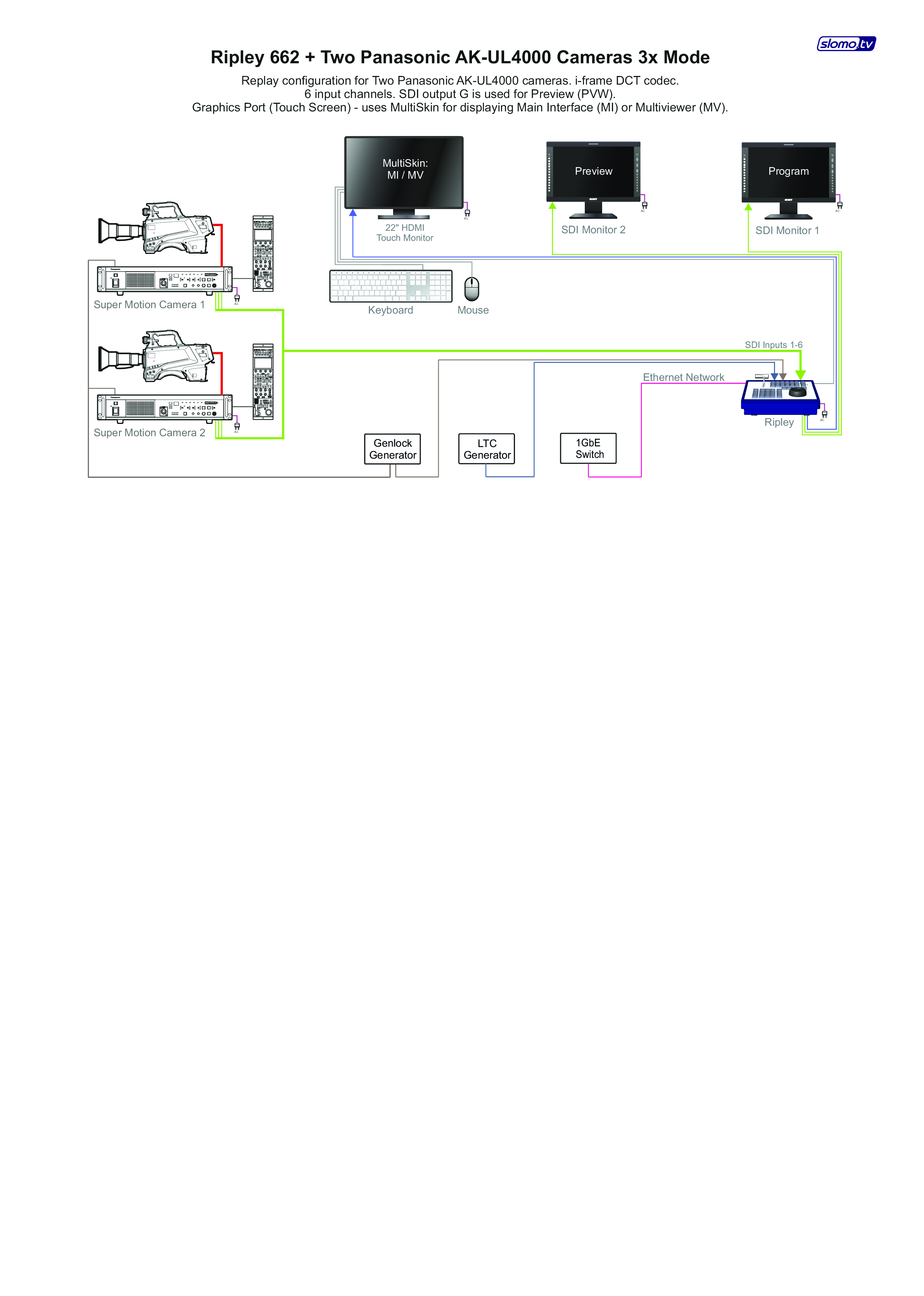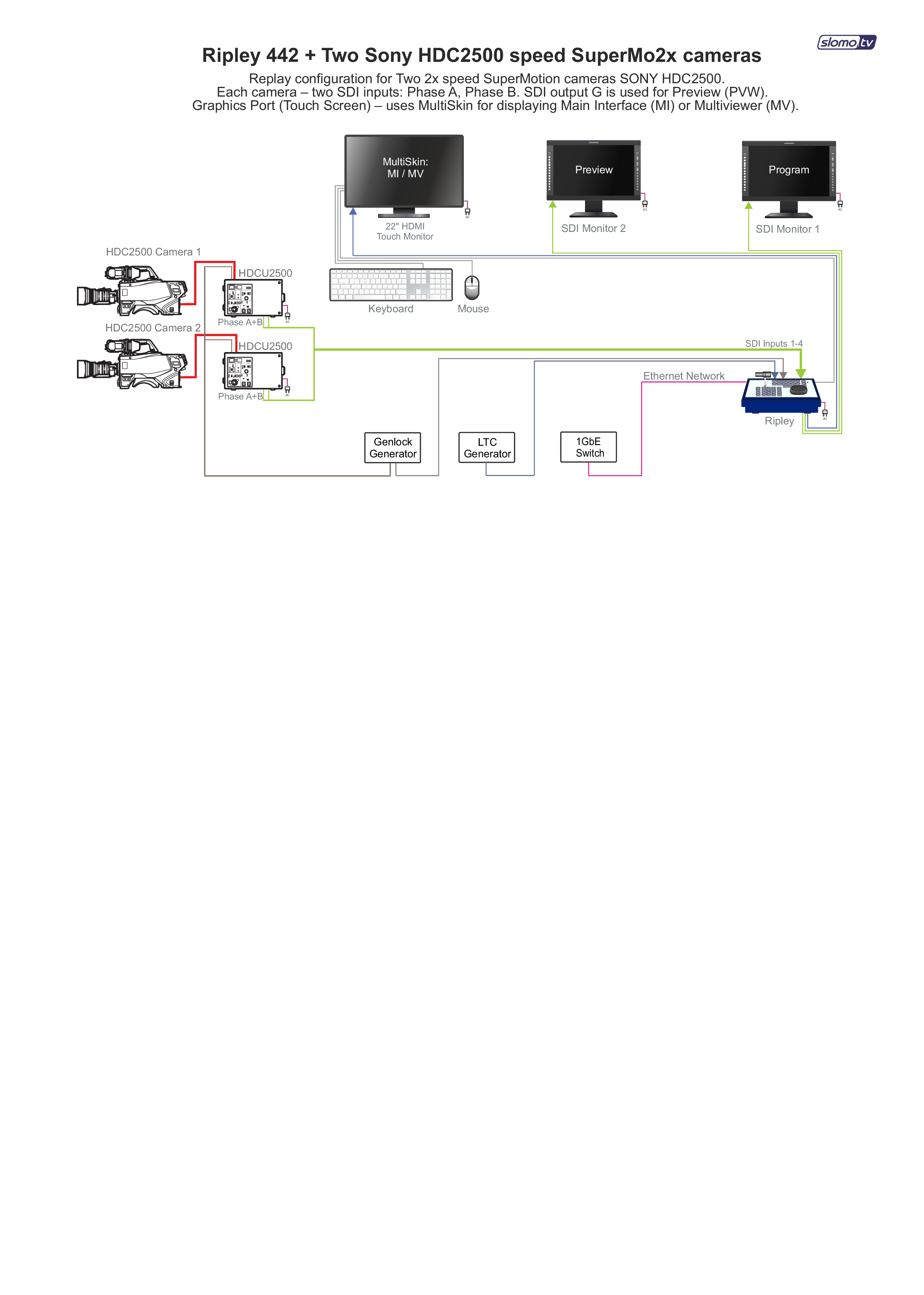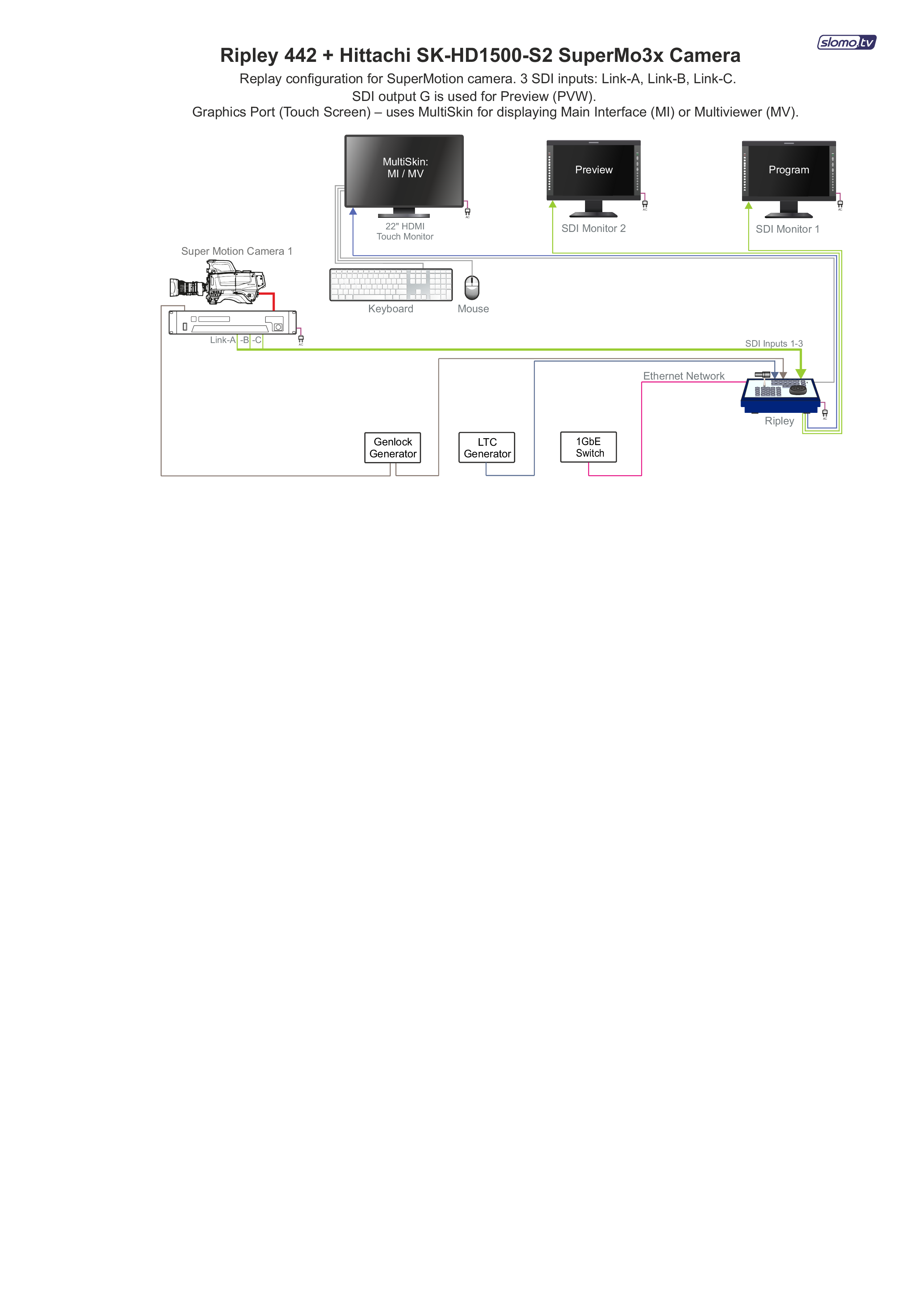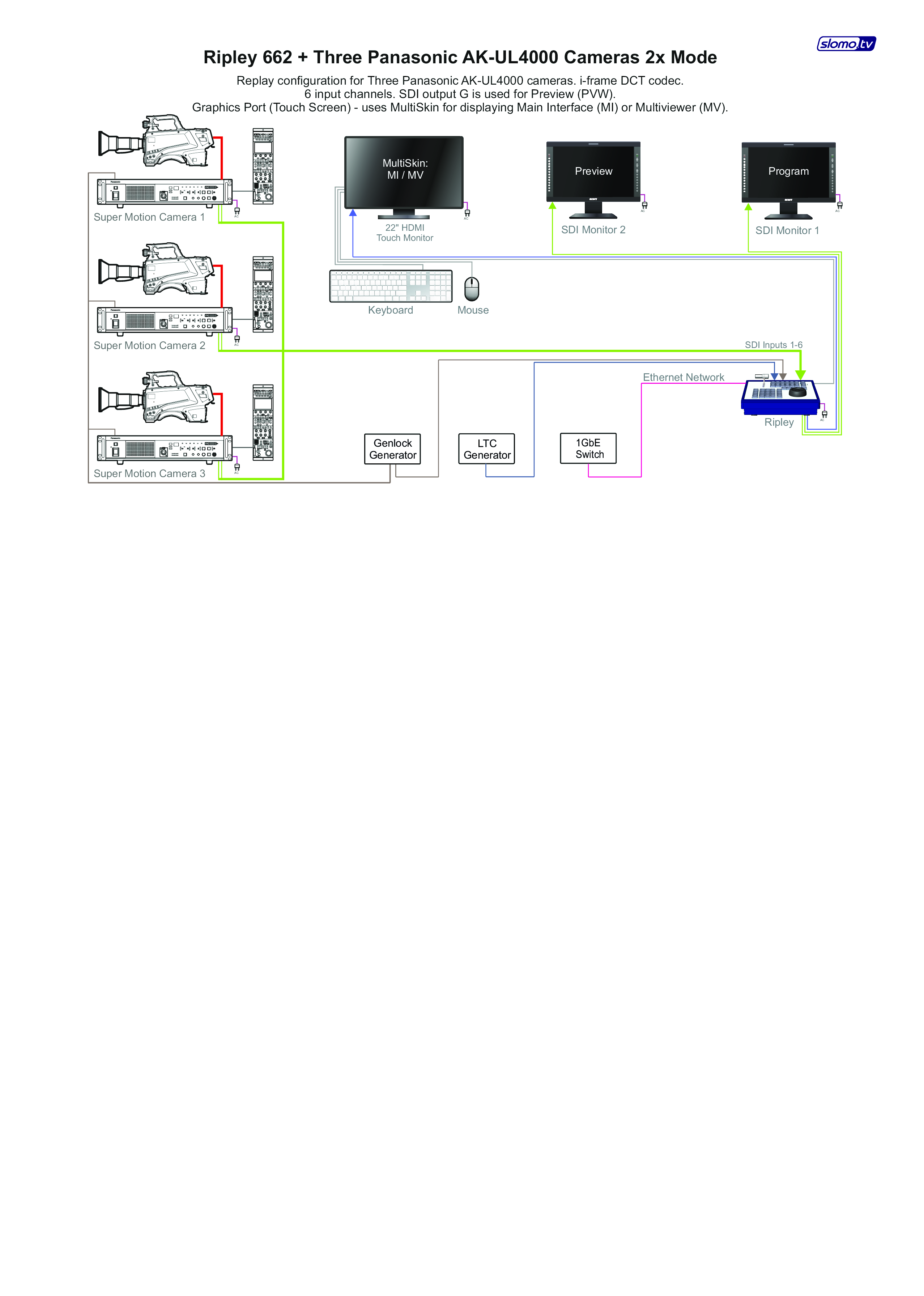 SDI output for broadcasters and for the replay review area (RRA) monitor on the field,