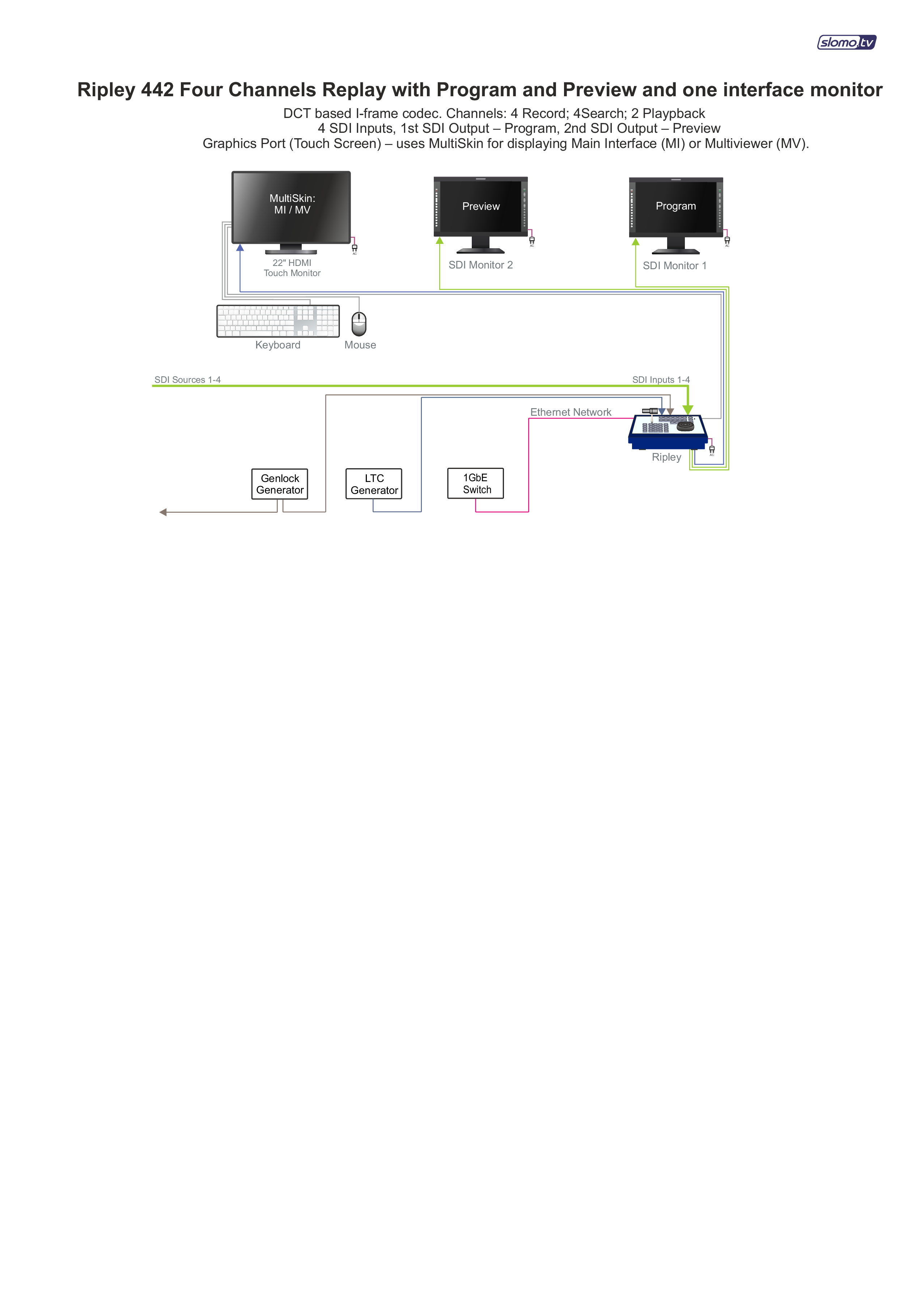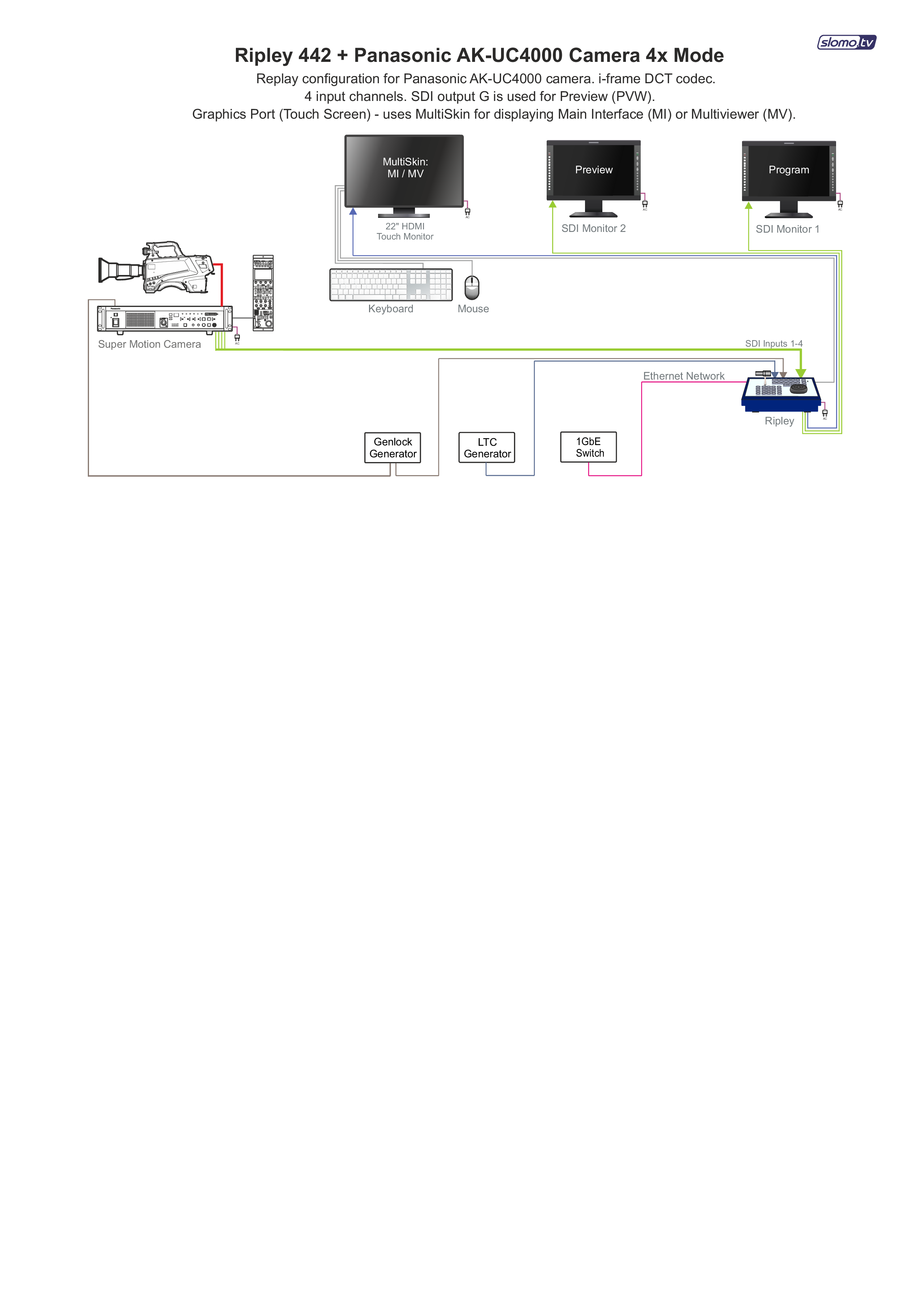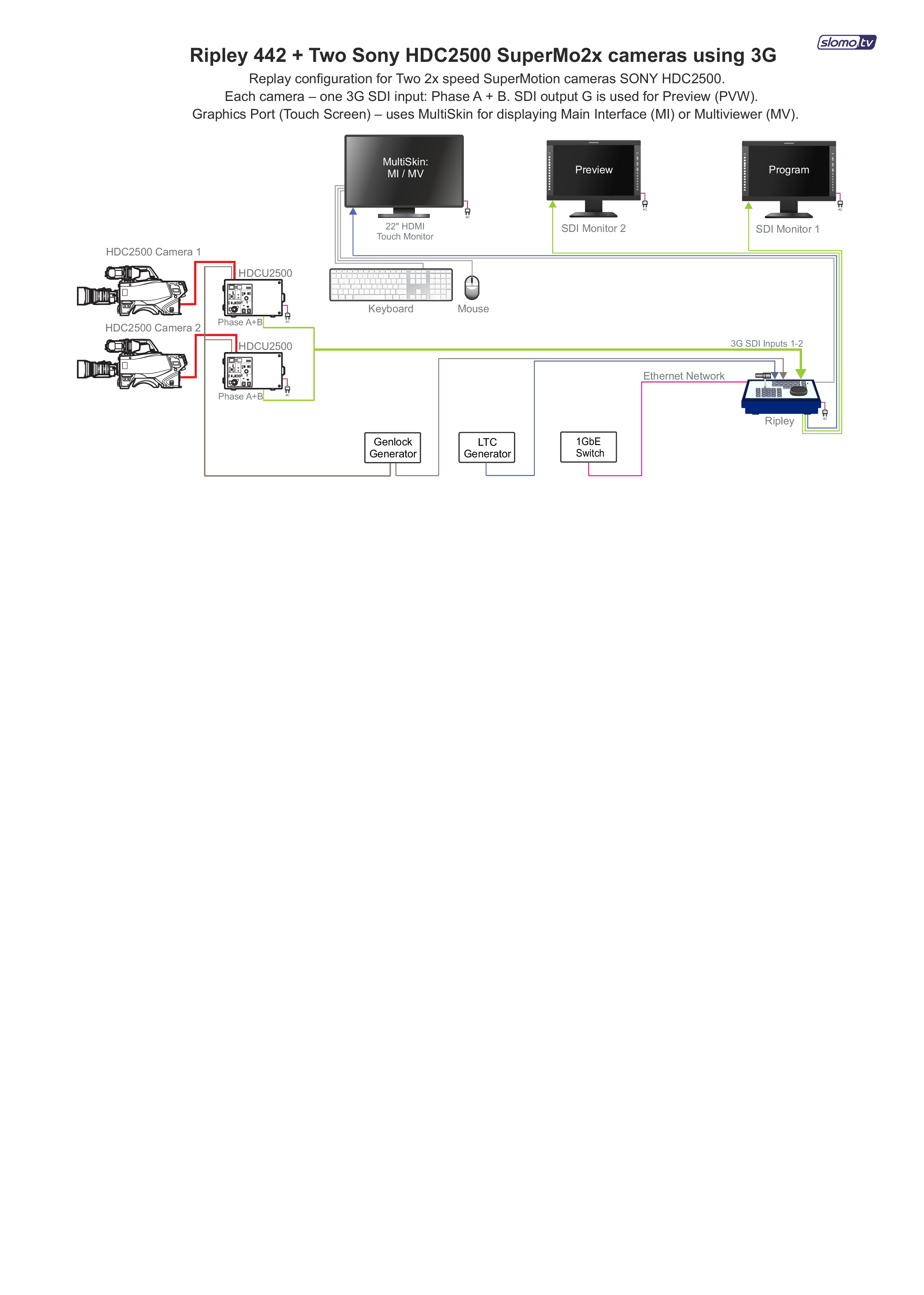 SDI output for broadcasters and for the replay review area (RRA) monitor on the field,