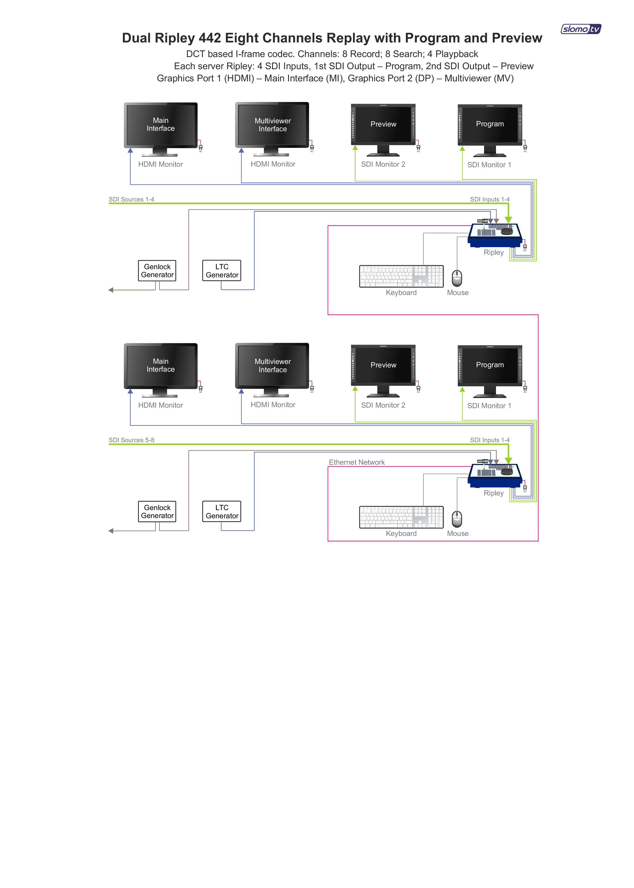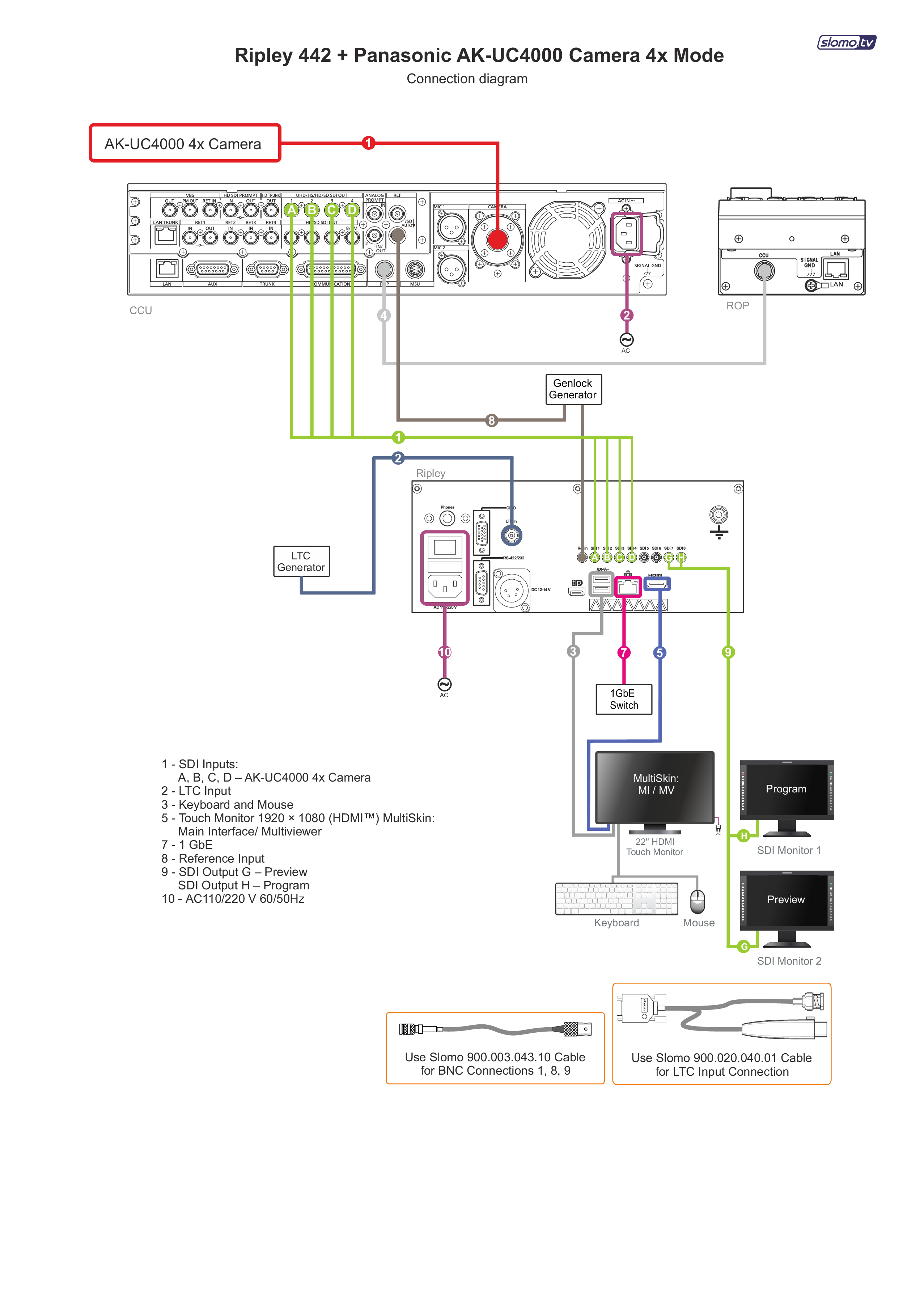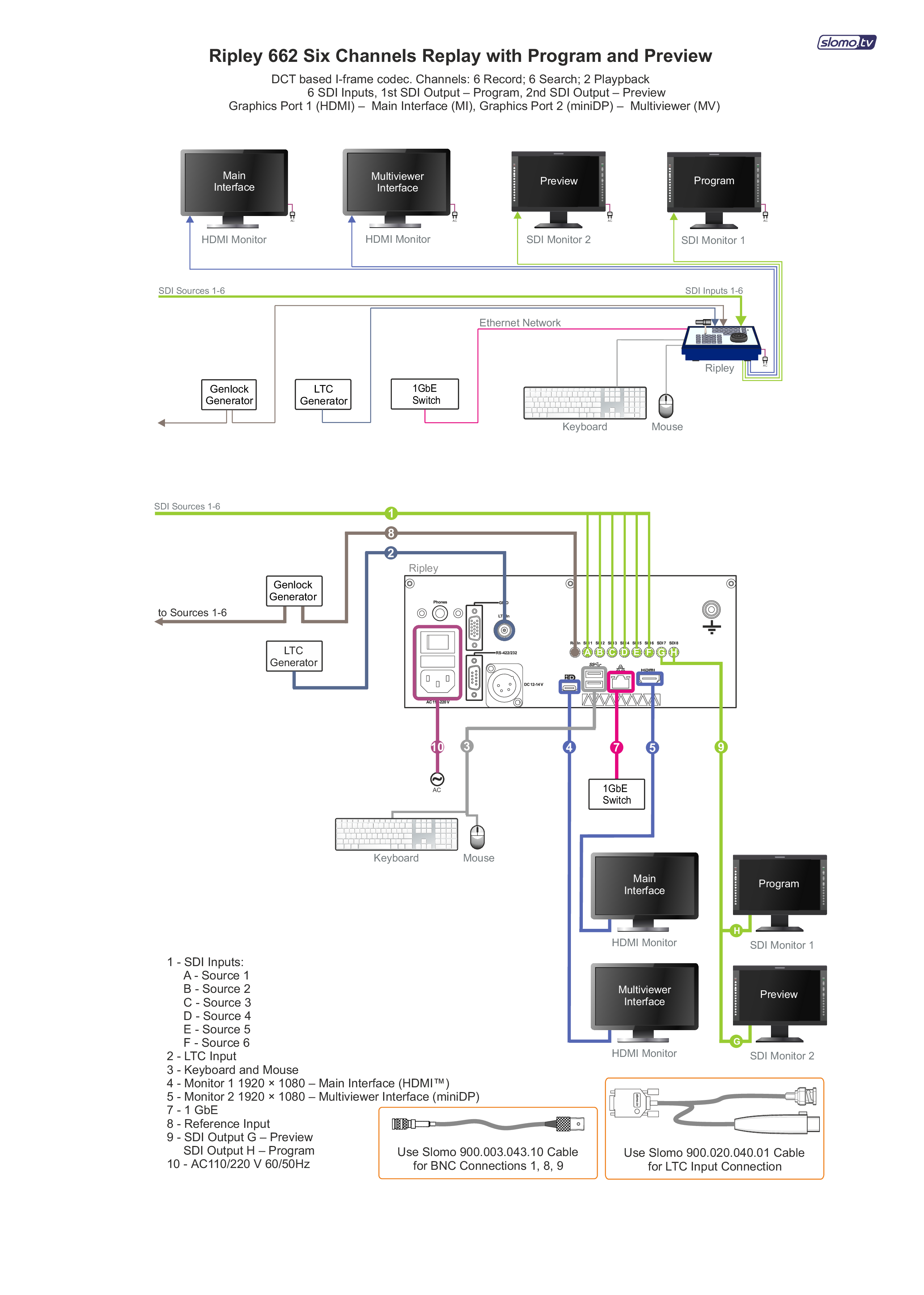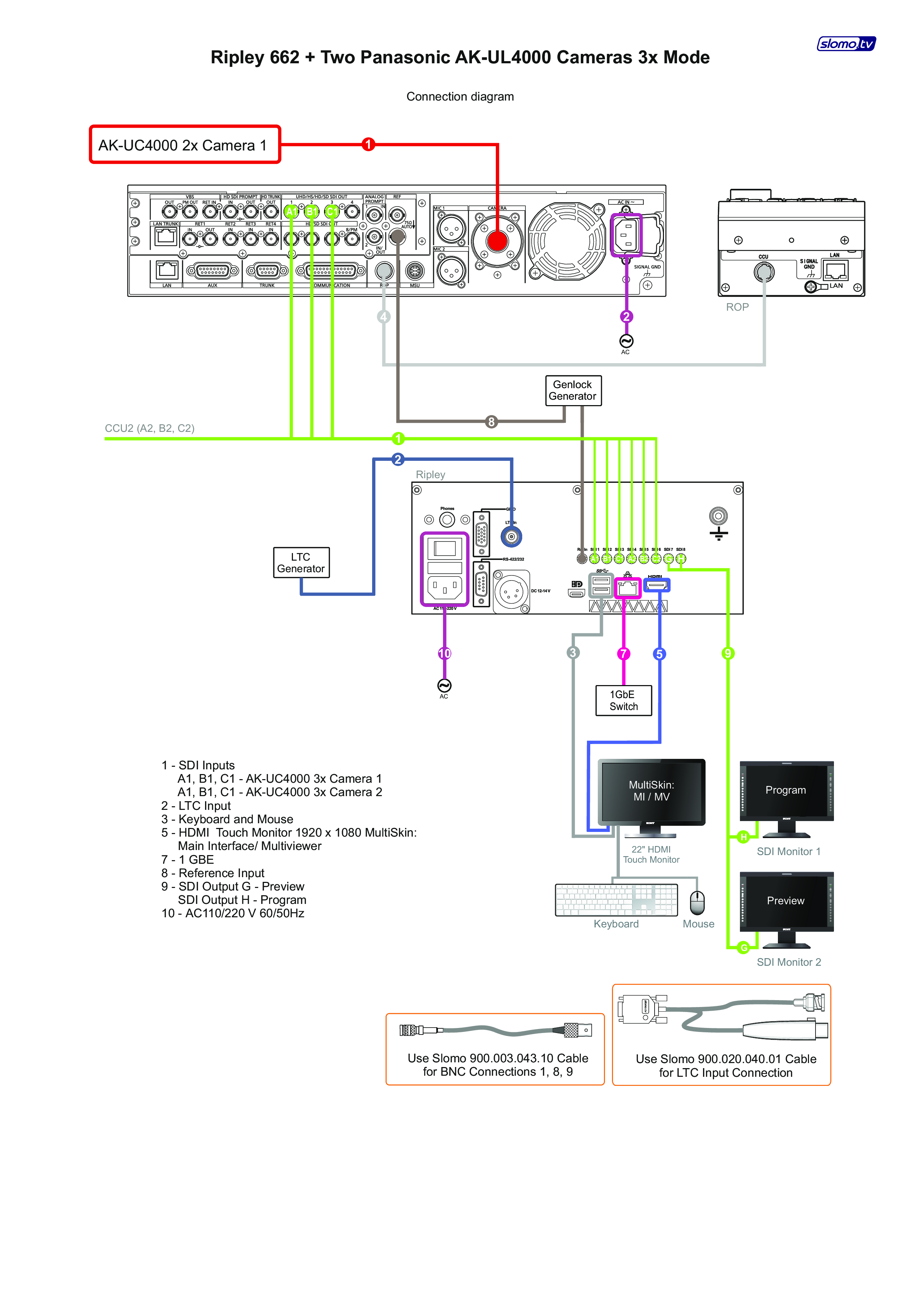 SDI output for broadcasters and for the replay review area (RRA) monitor on the field,