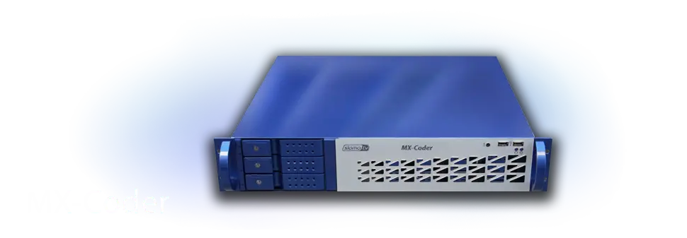 MX-Coder is a specialized server that combines a video exchange system with slomo.tv servers, transcoding, network file storage for the editing stations and recording system to 3 alienated 3.5" SATA hard drives in its built-in SATA Rack.
